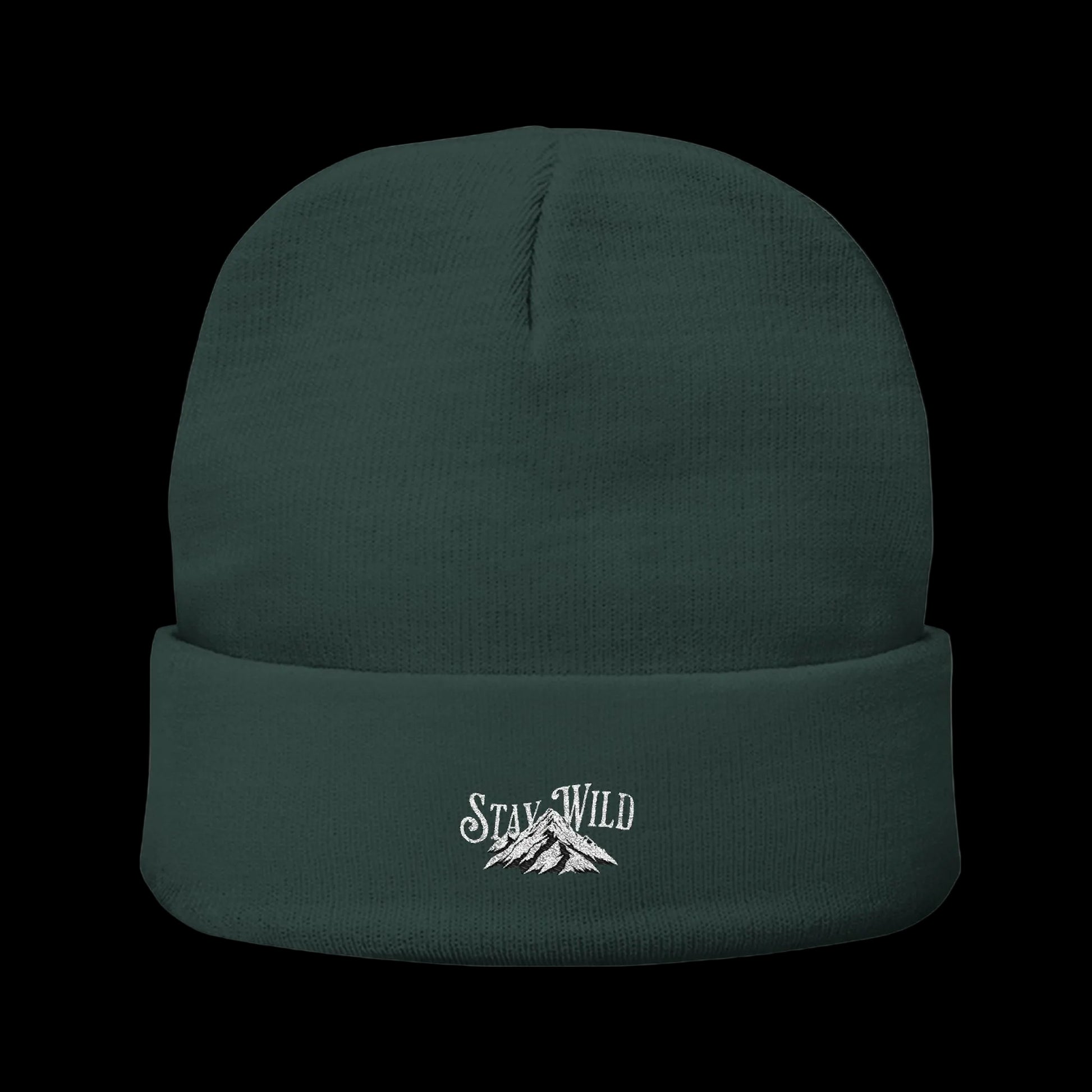 Stay Wild Mountain Beanie — Classic Cuffed Embroidered Beanie